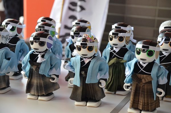 出番を待つロボホン新選組の皆さん。どこか凛々しく、緊張しているようにも見えます。