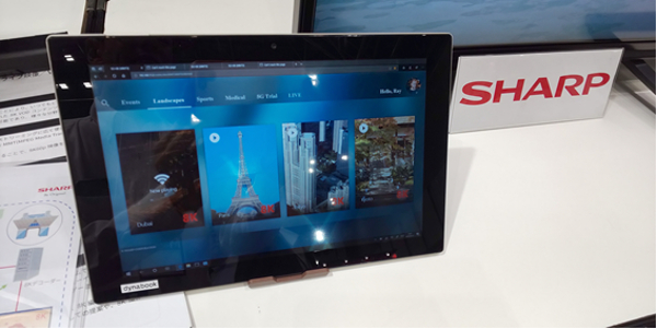 今回はさらに、東京ソラマチ側に8Kライブ映像とは別のコンテンツも用意し、ビッグサイト側のタブレットでコンテンツを選択するとモニターの映像が切り替わるというソリューション展示も行いました。