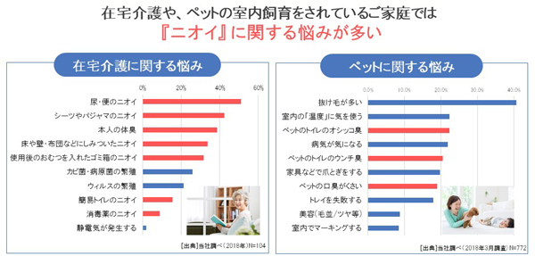 まずは「除菌脱臭機」の開発の背景について。近年、ペットを室内で飼育される方や、ご自宅で介護をされる方が増えるにつれて、家の中のニオイが気になるという声が多く聞かれるようになりました。また、住宅の気密性が高まったことで、ニオイがこもりやすくなっています。このようなニオイに関する悩みに応えるため「除菌」と「脱臭」に特化した「除菌脱臭機」を開発しました。