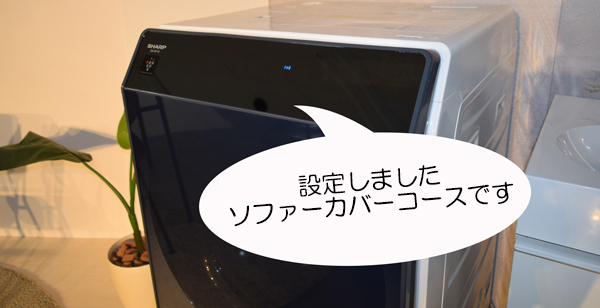これまで私はなんとなく「ホームクリーニング」コースを選んでいましたが、「COCORO WASH」では、なんと41種類の洗い方の中から最適な専用コースが選べます。「ソファーカバー」コースを選んで送信すると、洗濯機本体にソファーカバーを洗う専用のコースが追加されるので、あとはおまかせ!もう適当なコースで洗濯しなくてもいいんです。もちろん従来モデルの<ES-W111>でも、同じようにすべての専用コースを使えます。「COCORO WASH」はどんどん進化し専用コースも増えていくので、使えば使うほど、洗濯機も進化していくんです。