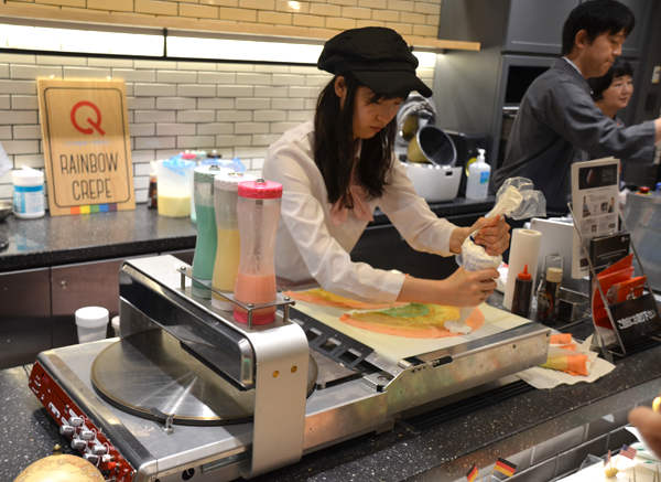 こちらは、自動でカラフルなクレープ生地を焼いてくれるマシン。