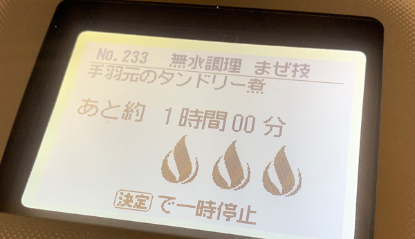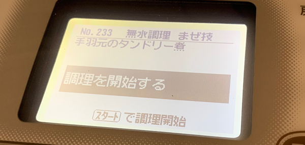 そして、自動メニューの「手羽元のタンドリー煮」を選んで加熱スタート!