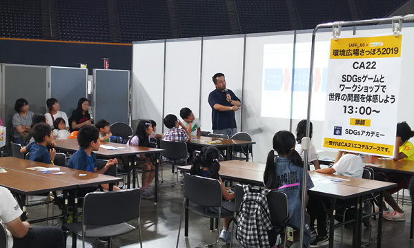 「環境広場さっぽろ2019」は、未来を担う子どもたちやそのご家族向けに、豊かな地球環境を次世代に引き継ぐことの大切さを伝える体験型のイベントです。「環境とSDGs」をテーマに、札幌市をはじめ、252社・団体が環境への取り組みを展示したほか、環境について楽しく学べる講演やワークショップ、ゲームなどが多数開催されました。
