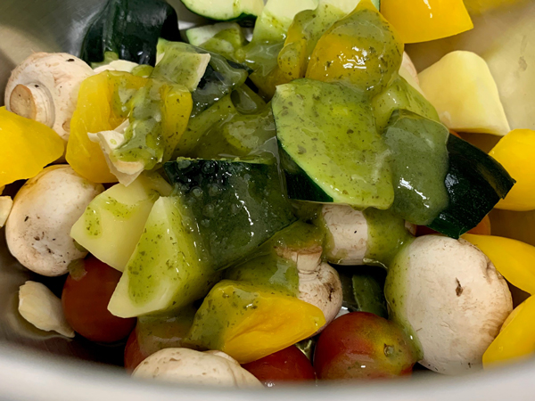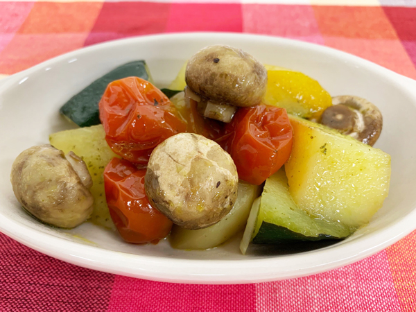 バジルのさわやかな風味とオリーブオイルの香りが野菜に絡み、とってもおいしいアヒージョでした。