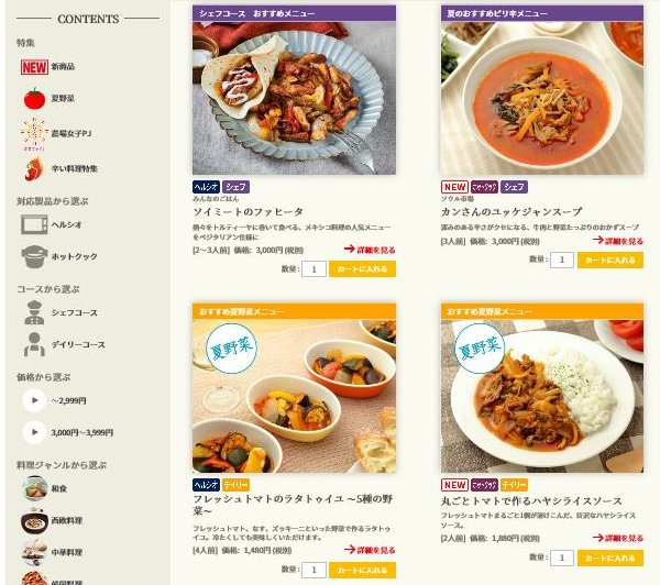 材料をスーパーで買いそろえてもいいのですが、少しずつたくさんの種類の材料をそろえるのは意外と手間だし、中途半端に残ってしまいがち。ヘルシオデリなら必要量がセットされていて、しかもほとんどの野菜がカット済なのでゴミも少なくてすみます。普段使わない調味料を用意する必要もないので、気軽に新しい料理にチャレンジすることができます。