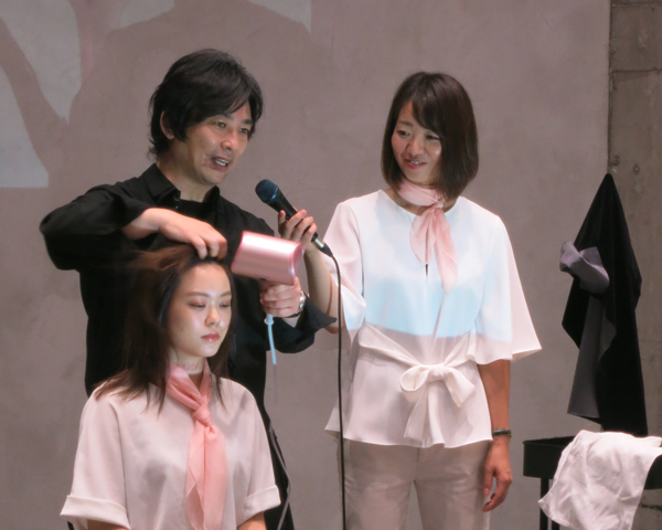 8月29日、マスコミ向けの新製品発表会と同時に開催した、一般ユーザー向けの体験会には、東京の人気ヘアサロン stair :case [ステアケース]アートディレクタースタイリストの時枝 弘明氏にもお越しいただきました。時枝氏のサロンであらかじめドレープフロードライヤーを使っていただき、このドライヤーのおすすめのポイントや、美髪をつくるコツなどをお話しいただきました。