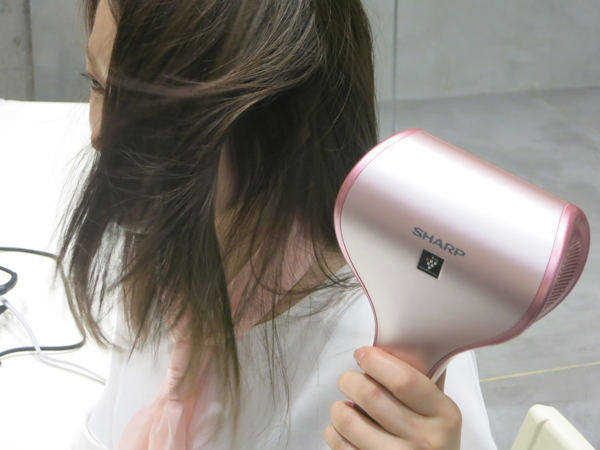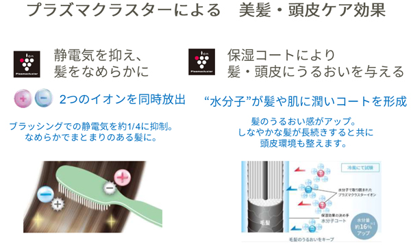 最後に(3)のプラズマクラスターについて。プラズマクラスターイオンには、静電気を抑えるとともに、うるおいを与える効果があります。時枝氏のサロンでは、プラズマクラスター搭載の当社製ドライヤーに入れ替えてから、静電気によるトラブルはほとんどないそうです。