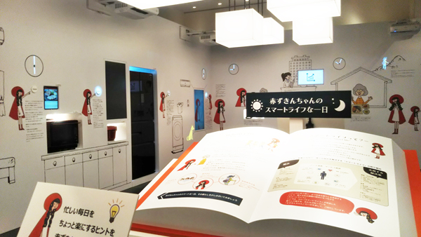 イベントでは、働くママを「赤ずきんちゃん」に見立て、映像をプロジェクターで投影する物語性のある演出がなされ、絵本を読むように楽しみながらスマートライフについて知ることができます。―――― すっかり大人になった赤ずきんちゃん。結婚して3人の子供を持つワーキングマザーとしてしあわせに暮らしています。仕事も、子育ても、家のことも、そして大好きなおばあちゃんのお手伝いまで・・・忙しい毎日をこなす秘密は、そう、「スマートライフ」だったのです!