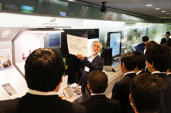 シャープミュージアムで、修学旅行生と当社OBの出会いがありました