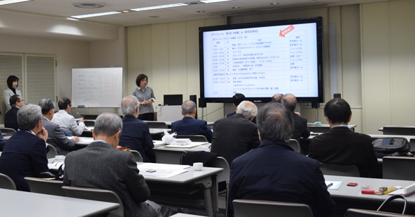 この日のためにOBたちは事前研修会に参加し、ストップウォッチを使って限られた時間で説明する練習を重ねました。OBたちは孫ほどの年代の高校生たちがどんな話に興味を持ってくれるだろうかと、話にクイズを織り交ぜるなど工夫を凝らし、説明用のボードも手作りしてくれました。