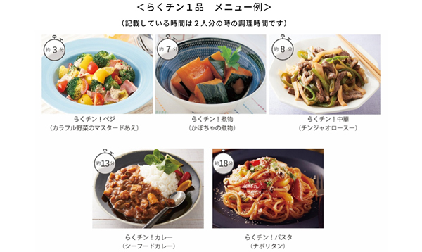 3.食材や分量をお好みで、煮物やカレー、パスタなどを最適な仕上がりに調理する自動レンジ調理新機能「らくチン1品」