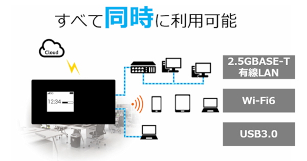 ・無線(Wi-Fi6)最大16台と有線(2.5GBASE-T LAN 、USB3.0)の同時使用が可能