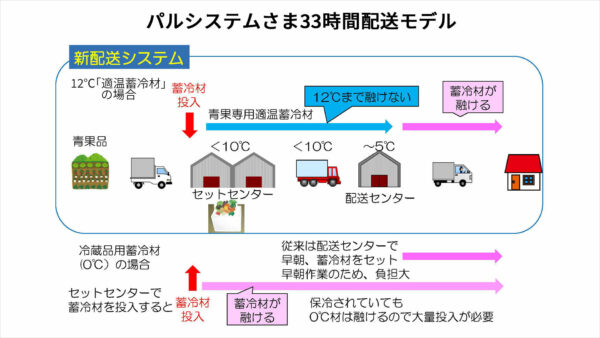 ― パルシステムさまが要望される33時間配送モデルを適用することによる効果についてもう少し詳しく教えてください。