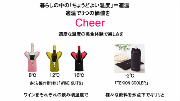 具体的には、Cheer(適度な温度の美食体験で楽しさを)分野での拡充に加え、Comfort(適切な温度で快適さを)分野では、入眠用途、医療系(痛み緩和)などの検討、そして、Confidence(最温度管理の物流で信頼を)分野では、再生医療(iPS細胞を使った再生医療では厳格な温度管理が必要)、血液(2~6℃)、医薬品やワクチン(2~8℃)などへの温度管理用として参入も検討しています。なかでもドライアイス代替蓄冷材の開発を進めていきたいと思っています。