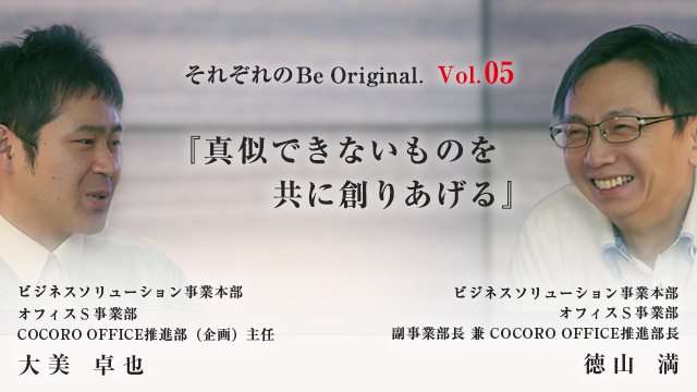 当社の技術、商品、サービス・ソリューションの、その先にいる、“ 人 ”にフォーカスした動画企画、『それぞれのBe Original.』の第5弾、COCORO OFFICE篇「真似できないものを共に創りあげる」をご紹介します。