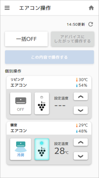 スマートフォンから「COCORO ENERGY」を使ってエアコンを操作する画面(イメージ)