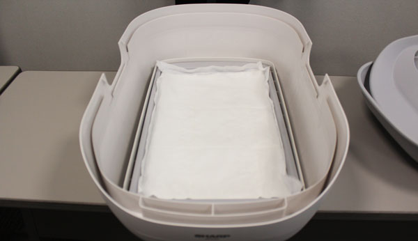 使い方は、普段お使いのトイレをこのペットケアモニターに変えるだけ。一般的なシステムトイレと同じで、上段のチップを敷いた“すのこ”部分に猫ちゃんがおしっこをし、おしっこを吸った下段の吸水シートを定期的に取り替えます。