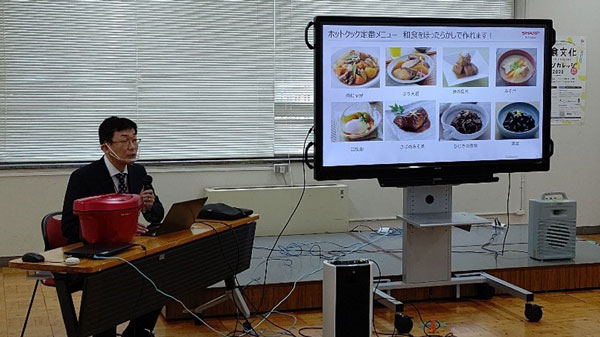 ホットクックの紹介をする当社国内スモールアプライアンス事業部長の奥田
