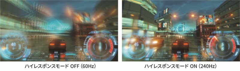 OFF時(毎秒60回、表示状態が変化)の4倍となる毎秒240回の表示状態の変化を実現。アプリ側の仕様により、4倍速(240Hz)にならない場合があります。