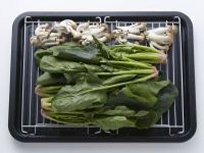 例えば①の「適切な加熱方法」ですが、青菜なら、ヘルシオのソフト蒸し機能を使うと70℃で12分程度加熱し、蒸し野菜が作れます。また、ホットクックなら手動の蒸し機能で、時間を1分に設定するとシャキシャキ食感のおいしい青菜ができあがります。機械の設定だけで、加熱しすぎにならず、誰でも簡単においしい蒸し野菜を作れます。