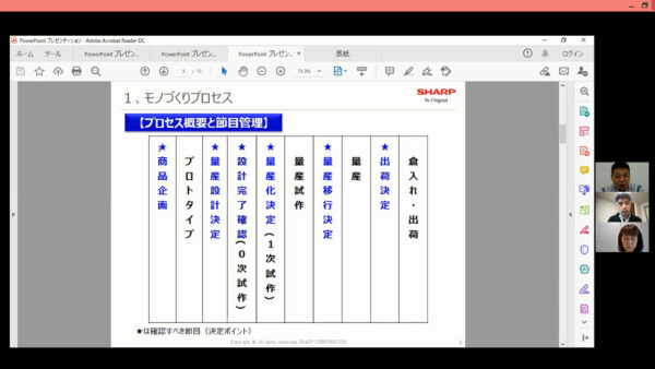 今後、シャープでは、オンラインでの講義を積極的に展開してまいります。諸経費が少なく済む分費用はリーズナブルですし、ご要望に合わせたカリキュラムも可能です。講義の内容を、私も見てみましたが、空気清浄機などシャープの製品開発を事例にしており、モノづくりの経験のない私でも理解できる内容でした。オンラインでも対面研修にひけをとらない内容になっています。興味をお持ちのスタートアップのみなさん、ぜひ、シャープのモノづくり研修を検討してみてください。