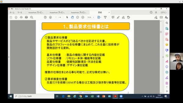 モノづくり研修オンライン「IoT.make Aine camp」 <⑦要求仕様の概要>より(オンライン上の画面)