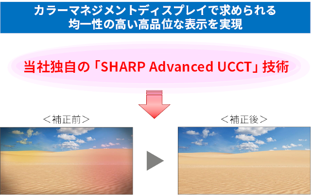 (福富)編集作業では色ムラや輝度ムラを抑えた表示が重要で、カラーマネジメントディスプレイに求められる均一性の高い高品位な表示を、当社独自の「SHARP Advanced UCCT(Uniform Color Calibration Technology)」技術を搭載することで実現しました。