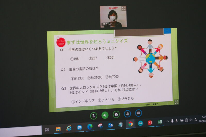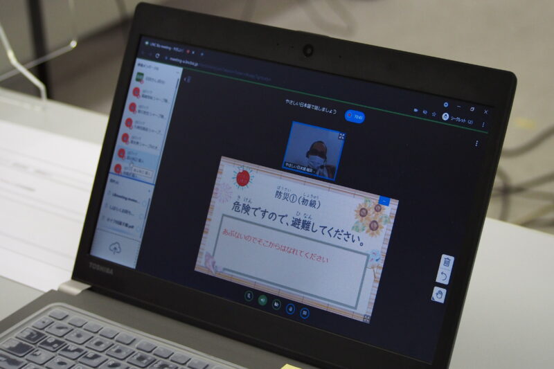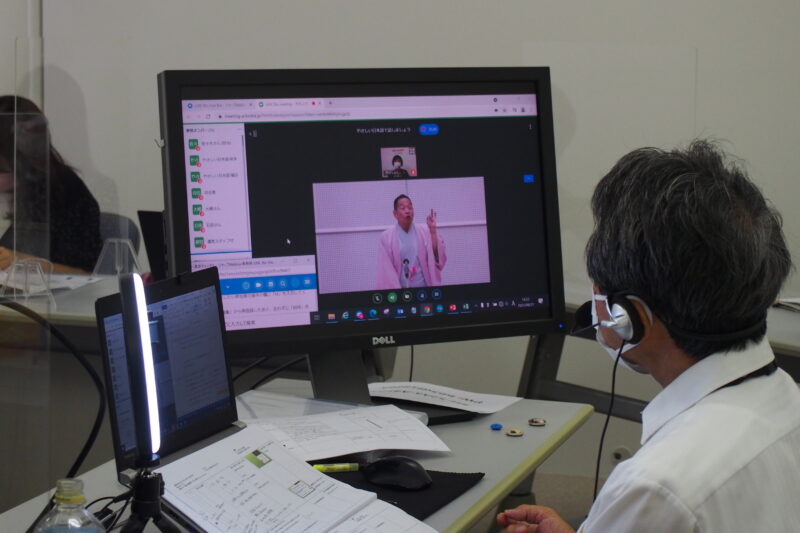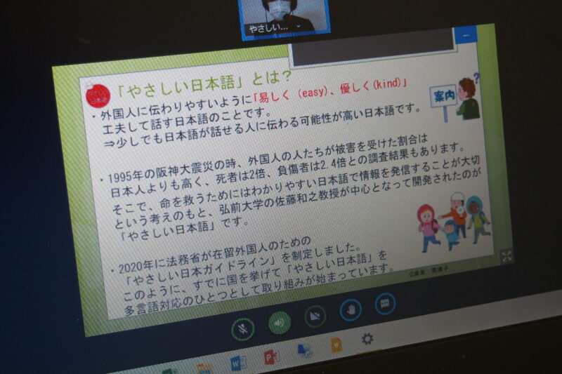 2時間のウェビナーの中で前半は岸本さんから「やさしい日本語」の講座、後半は福田さんより実践練習を行っていただきました。
