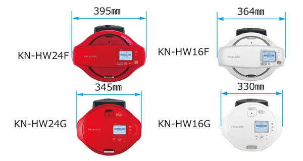 <KN-HW24G-R>(左奥)、<KN-HW24G-W>(右奥)、<KN-HW16G-B>(手前)