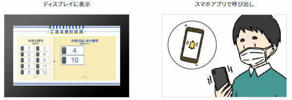 オプションで、現在の受付・呼び出し状況を画面の一覧表示で伝えたり、電話番号を登録することで、お客様のスマホへ呼び出しの連絡ができたりと、さらに便利に活用することができます。