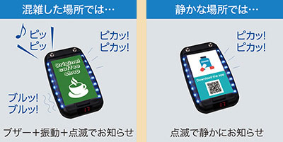| ③手元で鳴るので、自分が呼び出されたことがはっきりとわかる。 | ![]() |