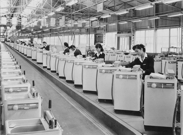 1959年、総合家電メーカーとして成長しつつあった当社は、電化製品を生産する新工場を八尾市に設立しました。最初の生産品目は、冷蔵庫、水冷式クーラー、洗濯機など。新工場の中でもメッキ工場は完全オートメーションシステムを採用し、当時東洋一の設備と言われました。八尾市はものづくりの町としても知られており、当社は工場の設立から60年余り、さまざまな製品を八尾の地から生み出してまいりました。