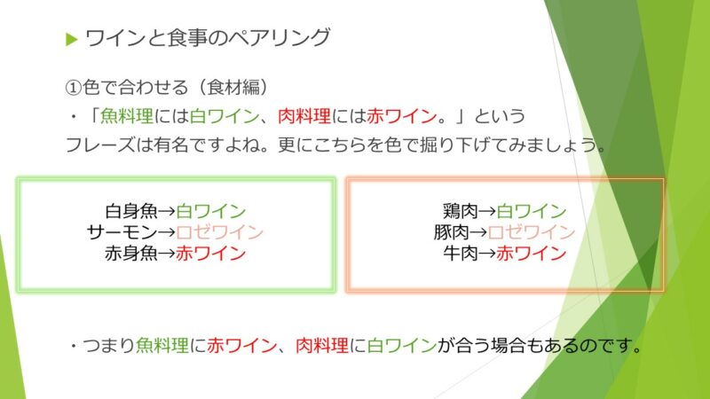 肉には赤ワイン、魚には白ワイン、とは限らない。