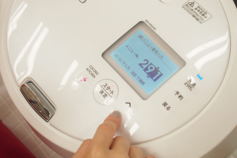メニュー番号291を選択し、<調理を開始する>でセット完了!(すぐ調理開始せずに時間指定予約することもできます)