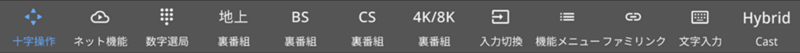 (左から、「十字操作」「ネット機能」「数字選局」「(地上波)裏番組選局」)