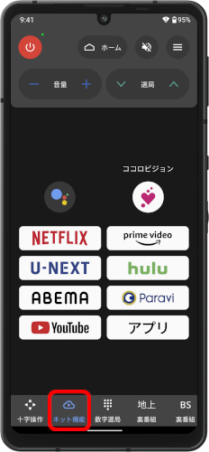 ※2「ネット機能」では、テレビに付属しているリモコンと同様のVODボタンが表示されます。機種(US/UH/Aライン)によっては、「ネット機能」タブ非表示になります。