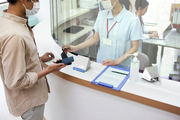 ニューノーマル時代、病院などの受付や各種窓口では透明なアクリル板やビニールシートなどの飛沫防止パーティションで仕切ることが当たり前になっています。感染症の拡大防止に有効である一方、会話の声が遮られ、お互いにマスクをしていることもあり、何度も聞きなおしたり、大きめの声で話さねばならなかったりと、ストレスに感じることも多いと思います。