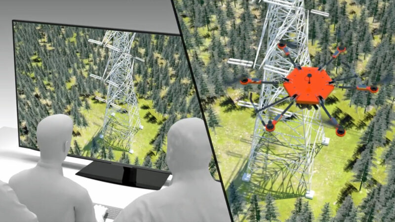 (右:「ドローン検査ソリューション」で使用する8Kドローン)