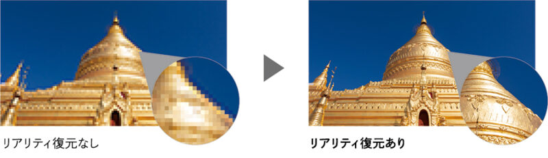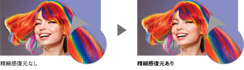解像度の低い映像も、信号を解析してもとの被写体が本来持っている精細感を推測して、微細情報を復元。クリアで高精細な映像を表現します。