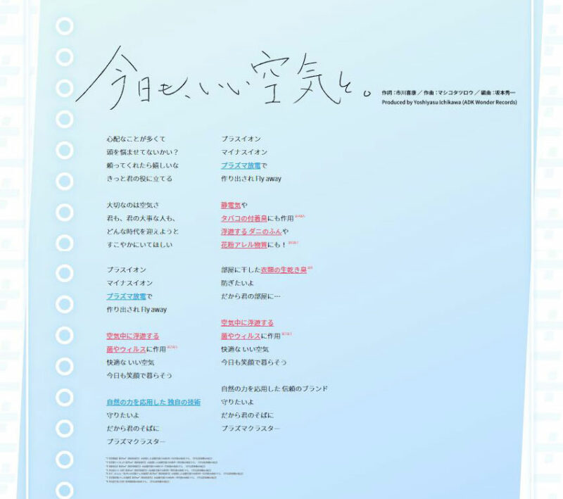 プラズマクラスターの歌「今日も、いい空気と。」の誕生に迫る!