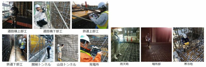 これまでの配筋検査は、多くの準備と、複数名の作業員による計測が必要で、構造物が大きくなるほど検査対象は増え、作業員の負荷も増大していました。