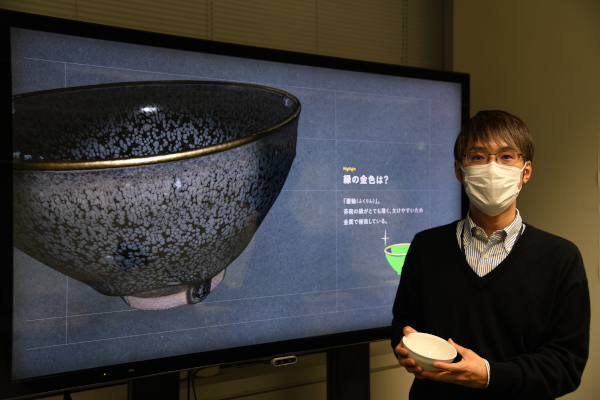 冒頭でお伝えしたとおり、「油滴天目」の3DCGは、愛知県陶磁美術館で公開中の「8K文化財鑑賞ソリューション」(展示名:8Kで文化財「ふれる・まわせる名茶碗」)でご覧いただけます。これまで難しかった「構造色」や高解像度8Kの3DCGよる再現手法で実物により近づいた「8Kインタラクティブミュージアム」を楽しんでいただけるとうれしいです。
