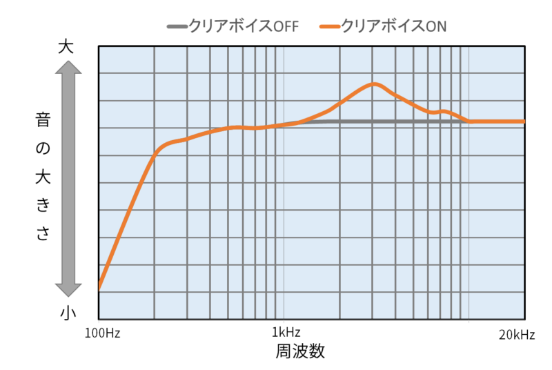 「クリアボイス」機能は、1,500Hz以上の音の信号を増幅することで、人の声を聞き取りやすくしているんです。