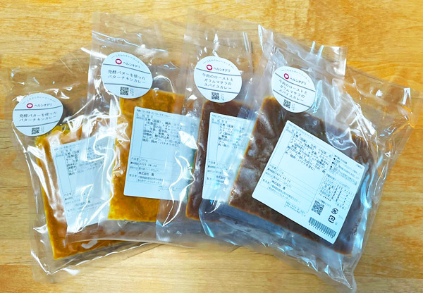 定期便のカレーコースは2種類のカレーが2人前ずつ、合計4人前が届きます。今日紹介するカレーは、「発酵バターを使ったバターチキンカレー」「牛肉のローストとガラムマサラのスパイスカレー」の2種類です。