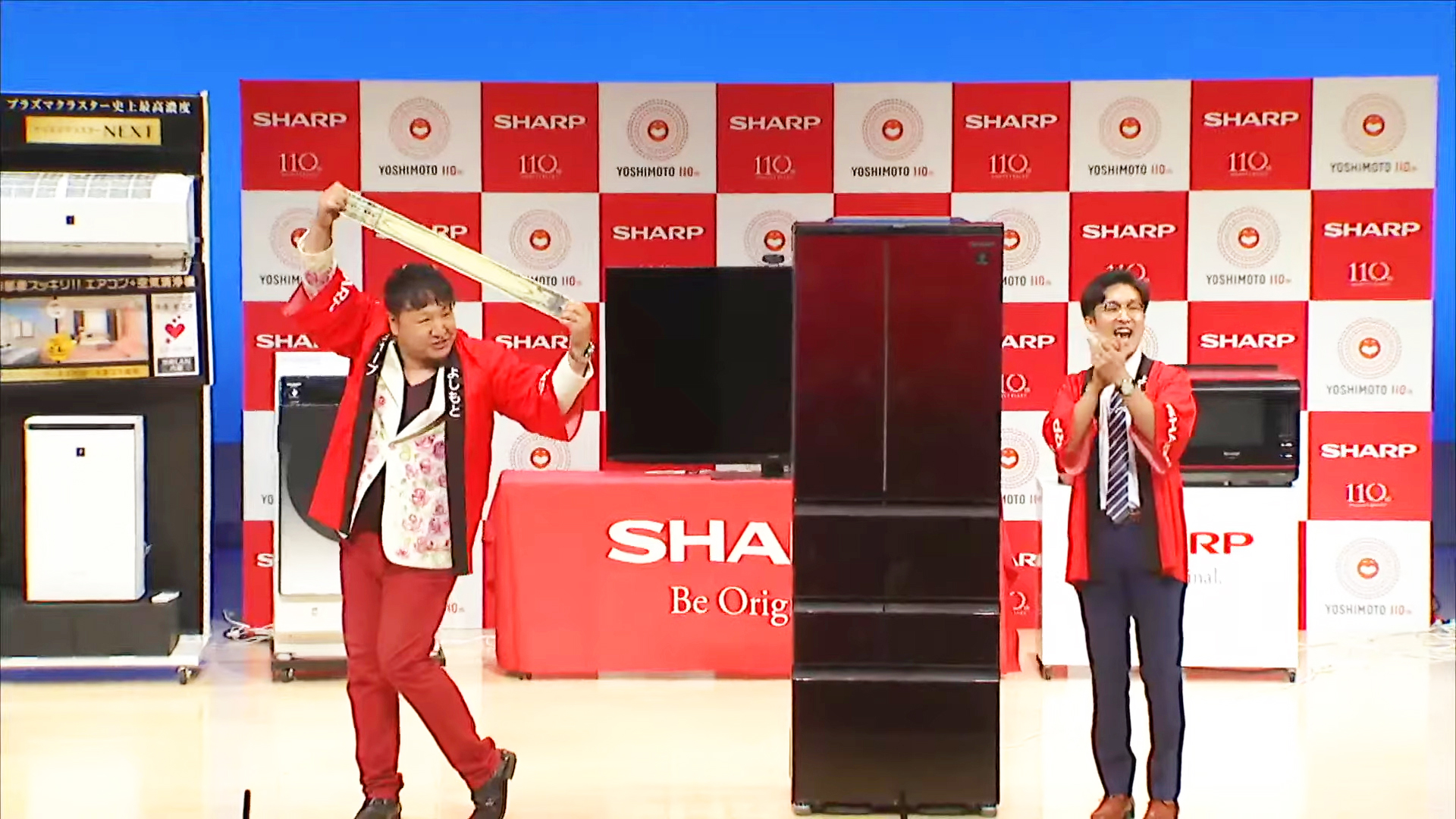 (宮本) みなさん落ち着いてくださいよ、本当に~。彼のエンターテインメントとシャープのPRを掛け合わせたネタにしました。