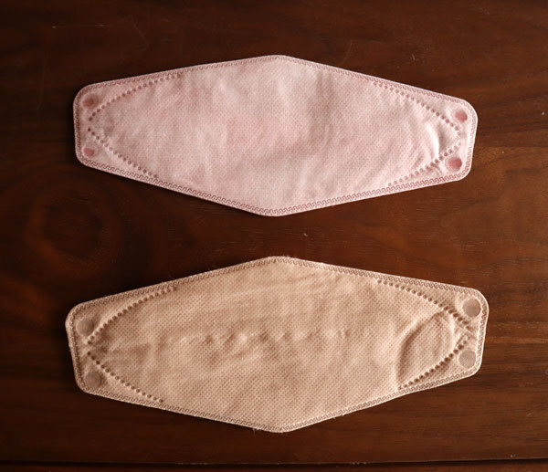 (菅村)社内アンケートでは、「いざ着けるとなると、いかにもピンクという色は躊躇してしまう。でも、淡いピンクなら使ってもいいかな」「ベージュは顔がくすんで見られそうだけど、淡い薄めの色なら良いのでは」などの声が寄せられ、濃い色より淡い色を求める方が多くおられました。また、試作品で確認したところ、淡い色味の方が上品に見え、不織布の素材の艶(つや)感も表現できると判断しました。