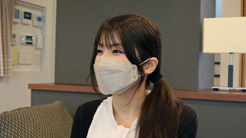 『シャープクリスタルマスク』のベージュ系(クリスタルベージュ)を付けた菅村さん