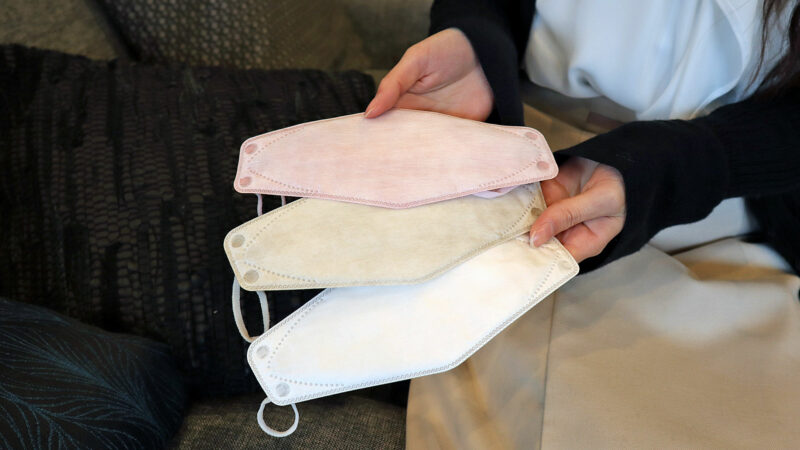 (菅村)色付きマスク参入にあたり、市場でどのような色が人気か研究しました。また、色サンプルの布地を社内でも確認し、どのような色が好まれているかを調べました。こうした調査結果に加え、お客様からの要望が特に多かったピンク系とベージュ系の2色に決定しました。