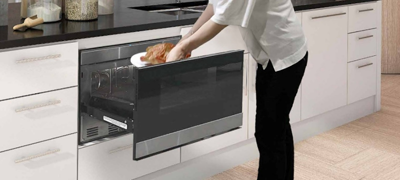 代表的な製品が、2004年9月20日に米国で発売した世界初※1の引き出し(ドロワー)式電子レンジです。この時の引き出しは、手動で開閉していました。
