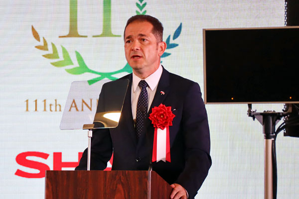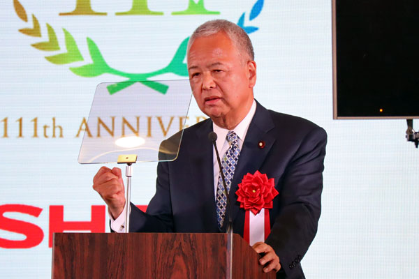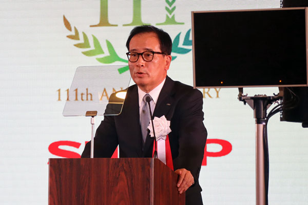 当社は今年で創業111周年を迎えます。これを記念し、本年4月17日、当社 幕張事業所(千葉市美浜区)にて111周年記念イベントを開催しました。当社創業家の早川家の皆さんや、衆議院議員、各国駐日大使、事業で密接な繋がりのある各地方自治体、また日ごろからお世話になっている取引先の方々など当社のステークホルダー約500名のご来賓にお越しいただきました。